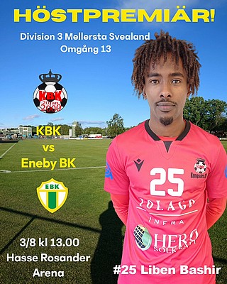 Så har det blivit dags att kicka igång höstomgången av Division 3 Mellersta Svealand! KBK har tränat på bra de senaste två veckorna och har även tre nya spelare att tillgå som förhoppningsvis kan bidra med positiv energi. De rödsvarta inleder med hemmamatch på Hasse Rosander Arena, då tabellnian Eneby BK gästar under lördagen. Matchstart kl 13.00!